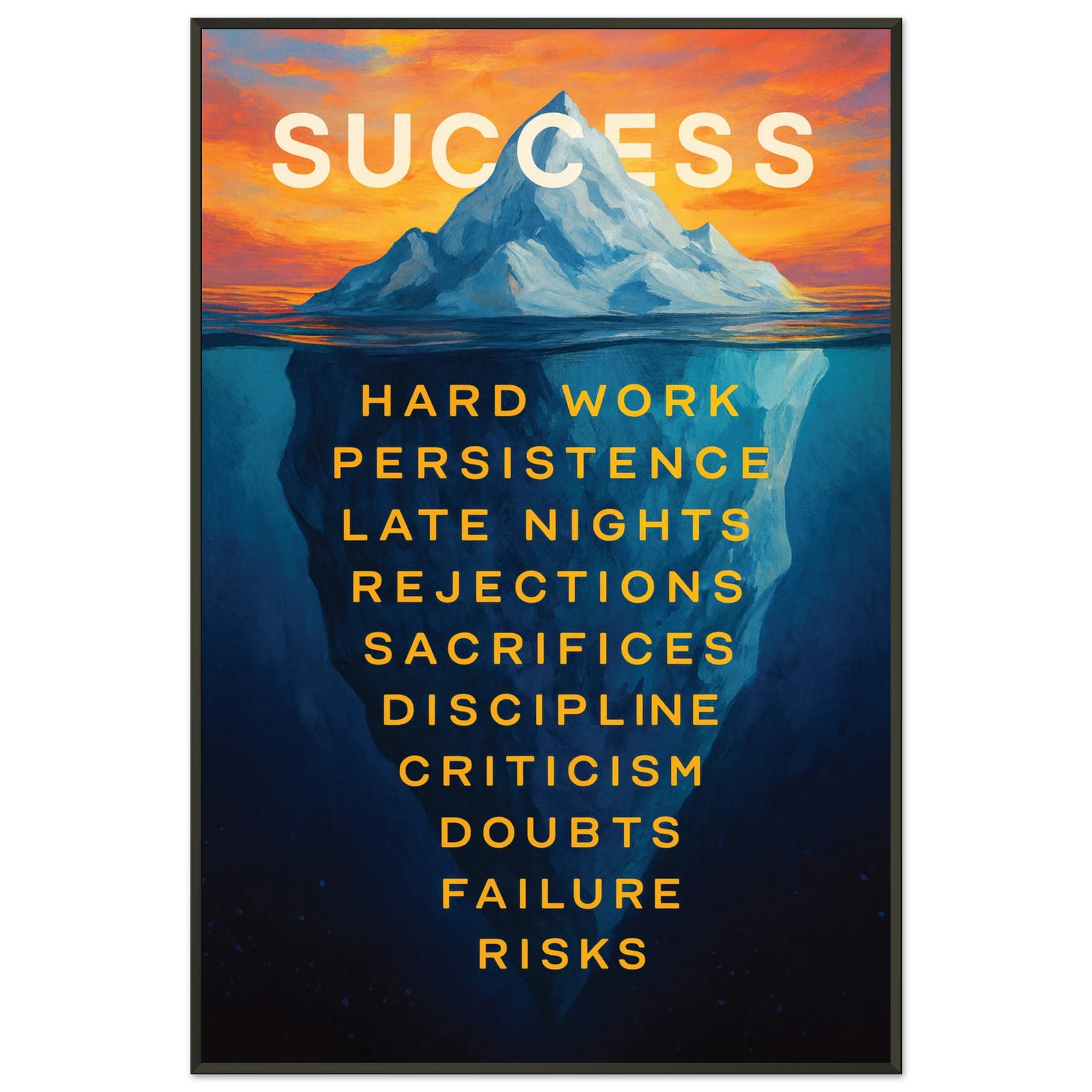 The Metal Framed Poster portrays the iceberg of success—showing only the tip above water, while persistence, sacrifices, and risks lie hidden beneath. This gift is for achievers, dreamers, and motivators who value resilience and courage. True to Giftomory’s ethos of Gift + Memory, it turns motivation into meaningful wall art for offices, study rooms, or living spaces.