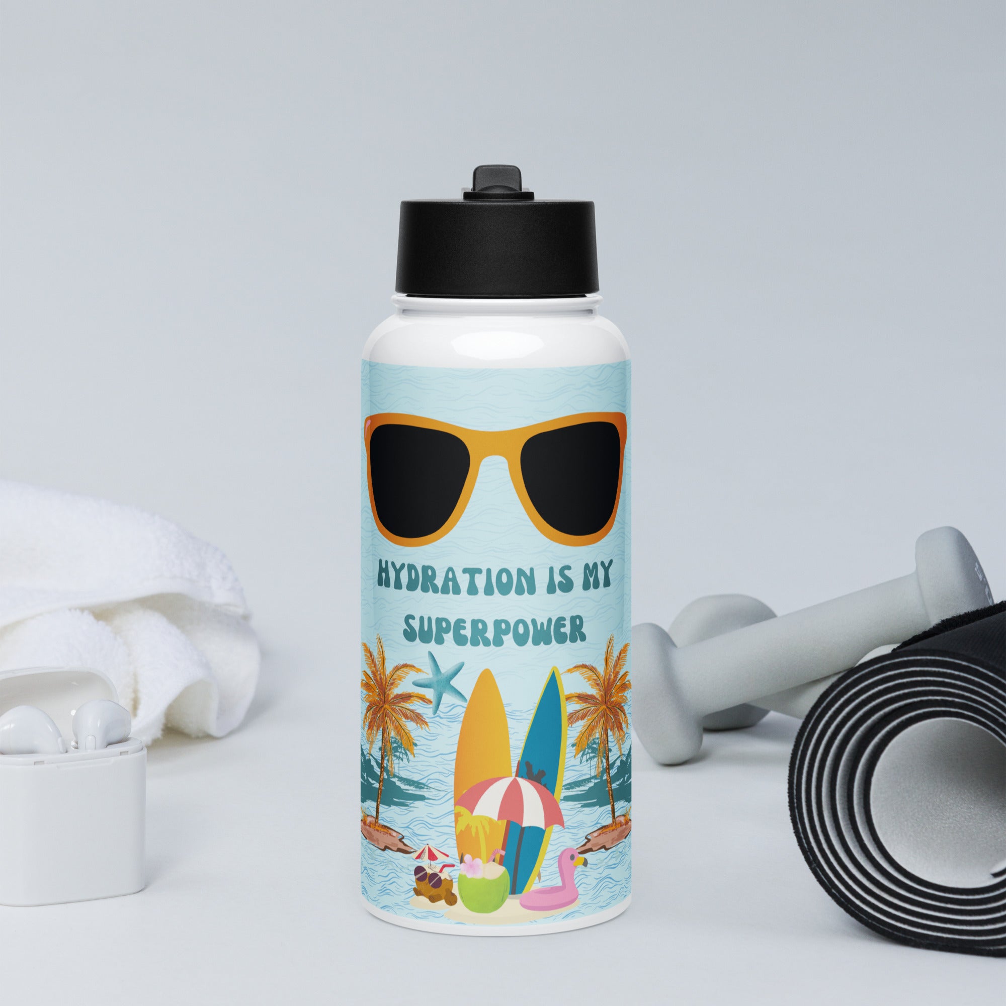 The Giftomory "Glow Like the Sun, Hydrate Like a Queen" Stainless Steel Water Bottle is an empowering emblem of summer confidence and vibrant living. The playful design features a cool pineapple in shades, surrounded by starfish, a pink donut float, and a beach chair. The encouraging phrases "GLOW LIKE THE SUN" and "HYDRATE LIKE A QUEEN" infuse every sip with a boost of self-assuredness. The sunny color palette creates an ambiance of carefree luxury and empowerment, making it an ideal gift for anyone who loves summer, embraces their inner queen, or simply needs a daily reminder to shine brightly. It truly embodies the spirit of "Gift" meets "Memory."