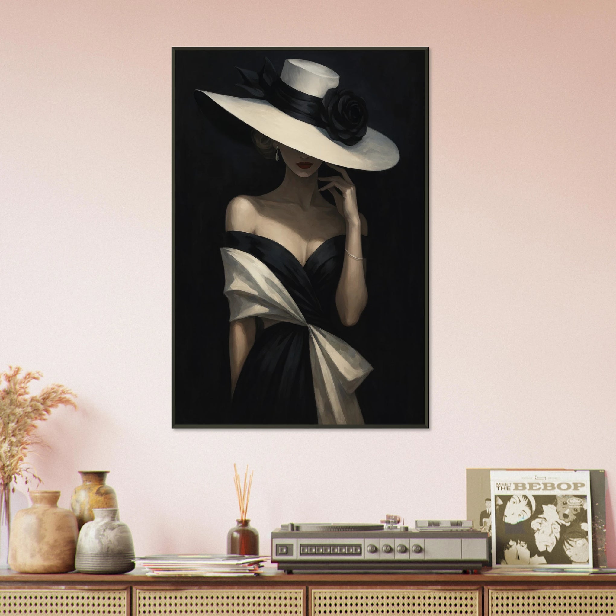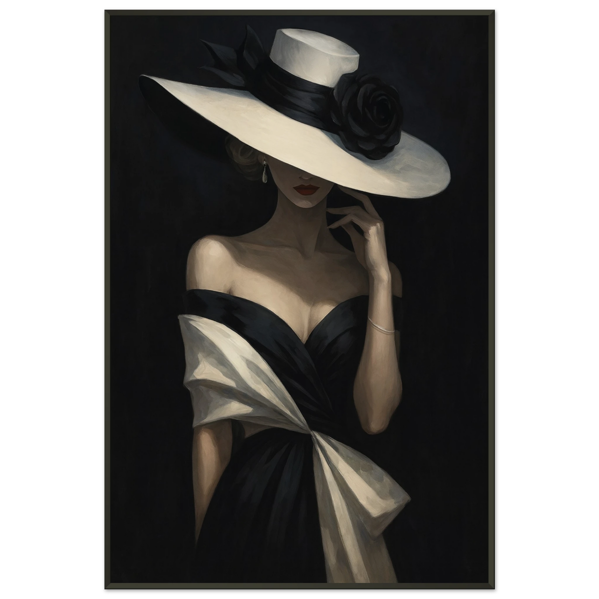 The Metal Framed Poster portrays a graceful woman in a black gown with ivory accents, her wide-brimmed hat casting an air of mystery and elegance. The design combines allure with sophistication, making it ideal for gifting. With Giftomory’s ethos of Gift + Memory, this gift is for anyone who cherishes style, confidence, and timeless beauty in their living spaces or offices.
