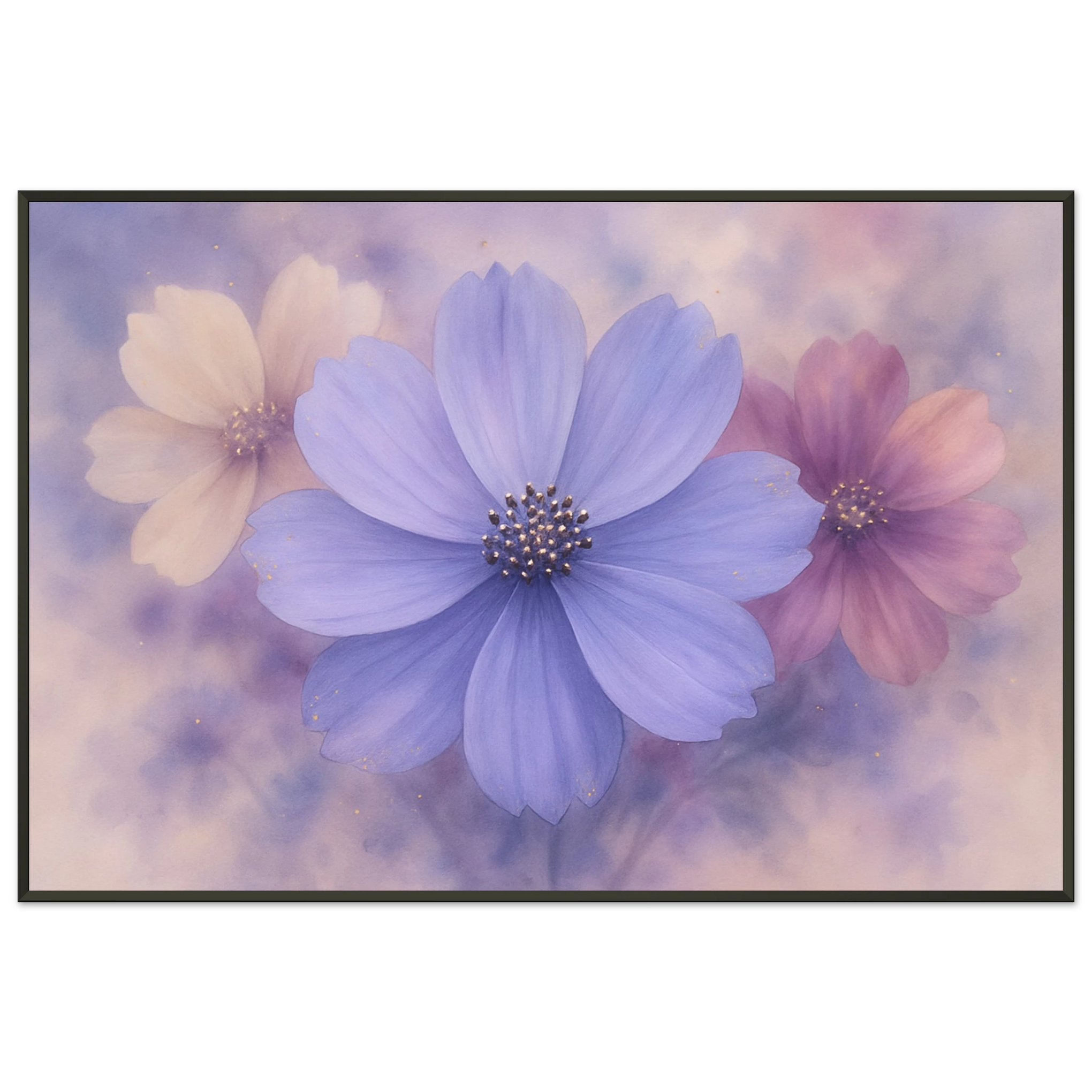 Introducing Soft Bloom Trio – Metal Framed Poster, a serene floral composition featuring lavender, ivory, and plum blossoms dancing across a misty pastel background. This gift is for someone who cherishes beauty in the quiet moments—perfect for bedrooms, nurseries, or meditative spaces. A tender expression of elegance, this Giftomory piece turns flowers into lasting memories.