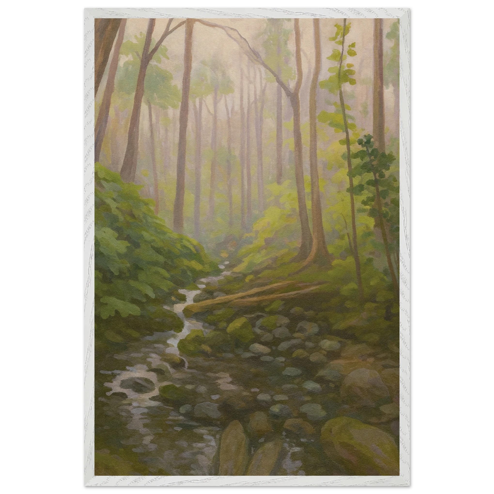 This gift is for those who cherish nature’s quiet embrace. The Wooden Framed Poster depicts a misty forest stream, where sunlight filters through tall trees and moss-covered rocks. Its soothing green hues and soft textures capture the essence of renewal and balance. At Giftomory, we merge Gift + Memory, turning fleeting forest walks into timeless works of art.