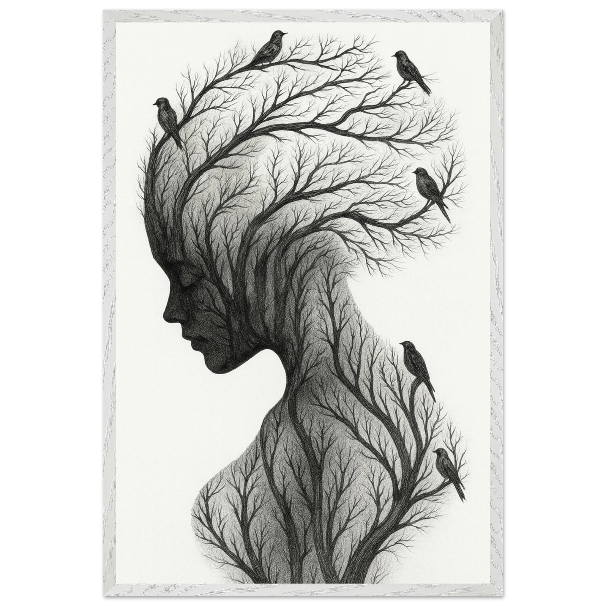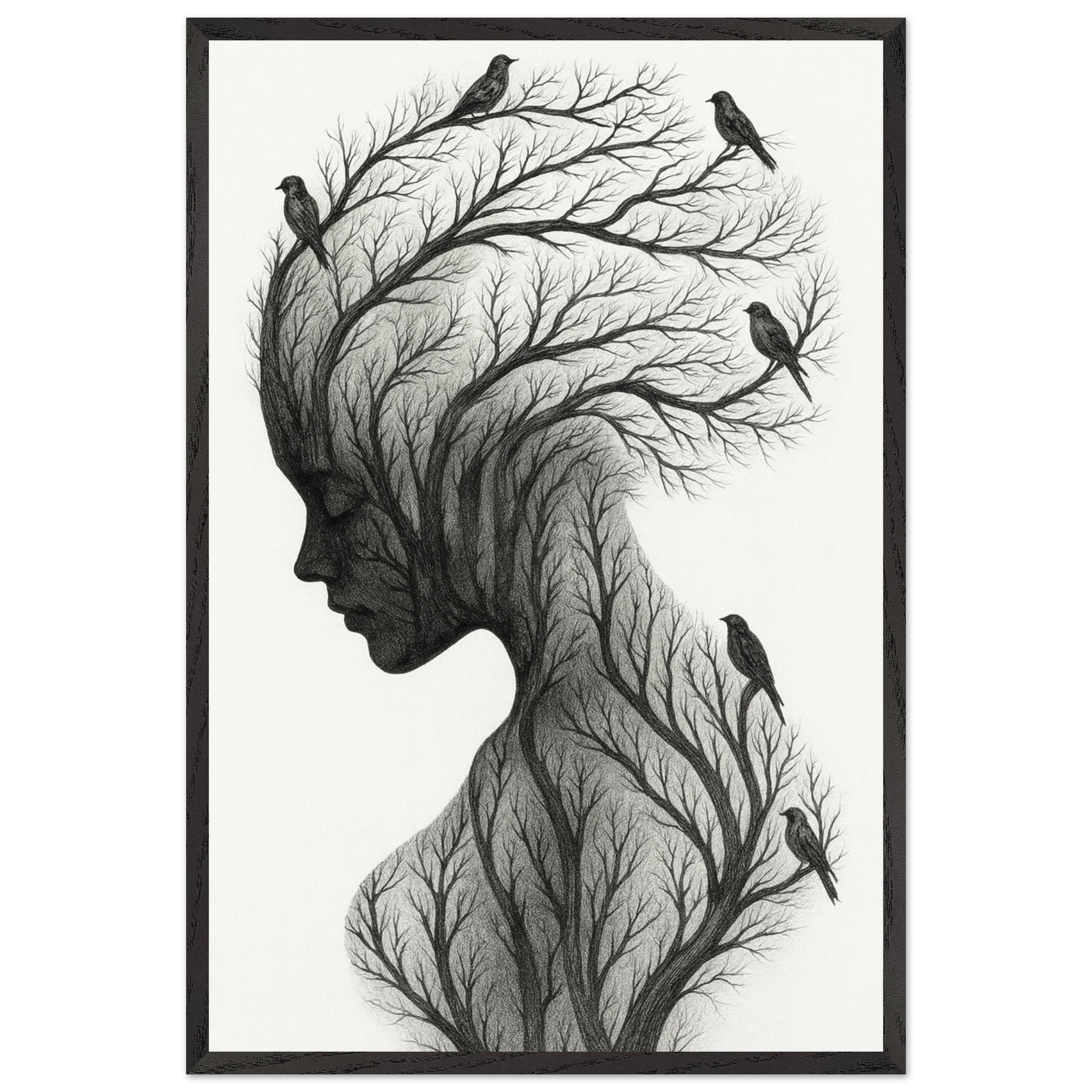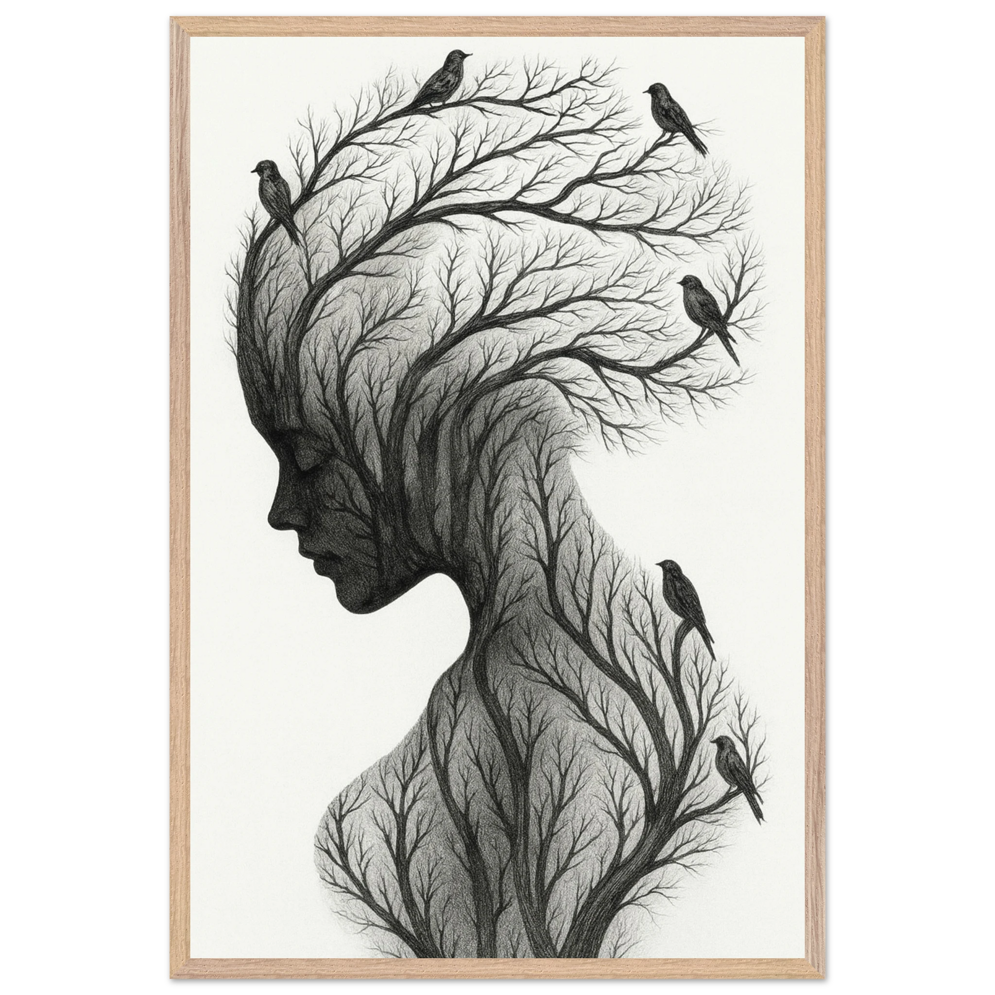 This gift is for those who find poetry in silence and beauty in growth. The artwork reveals a woman’s silhouette shaped by tree branches, with birds resting gently among them — symbolizing life, freedom, and inner calm. Perfect for living rooms, studios, or reading corners, it embodies Giftomory’s soul: where every Gift + Memory becomes timeless.
