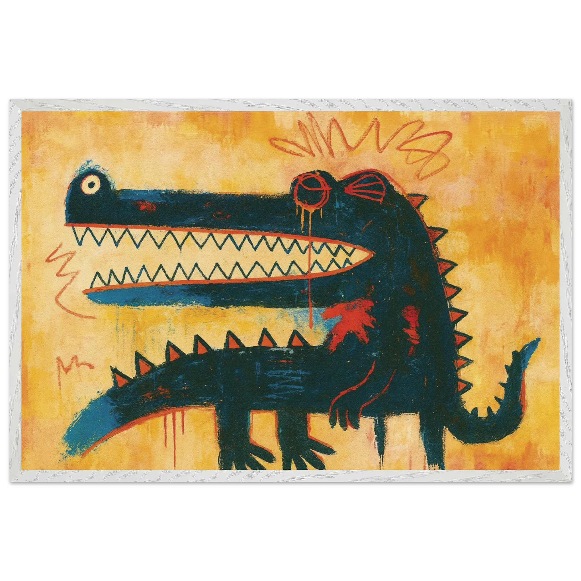 Framed Poster - This fierce graffiti dinosaur bursts with emotion—rough textures, dripping reds, and bold teeth capture raw energy and nostalgic wildness. It’s playful, intense, and deeply human. This gift is for art lovers who embrace chaos, kids at heart, and those who color outside the lines—Giftomory’s tribute to wild memories and untamed spirit.