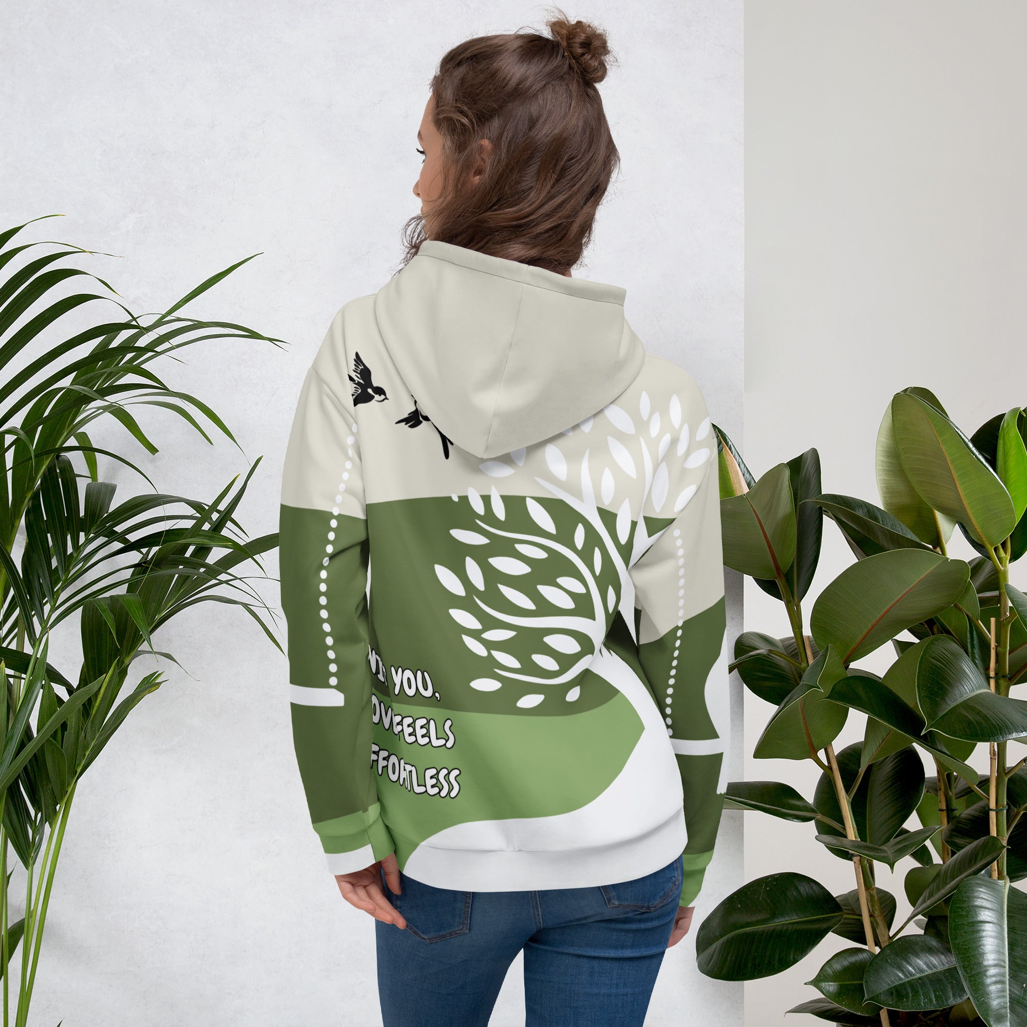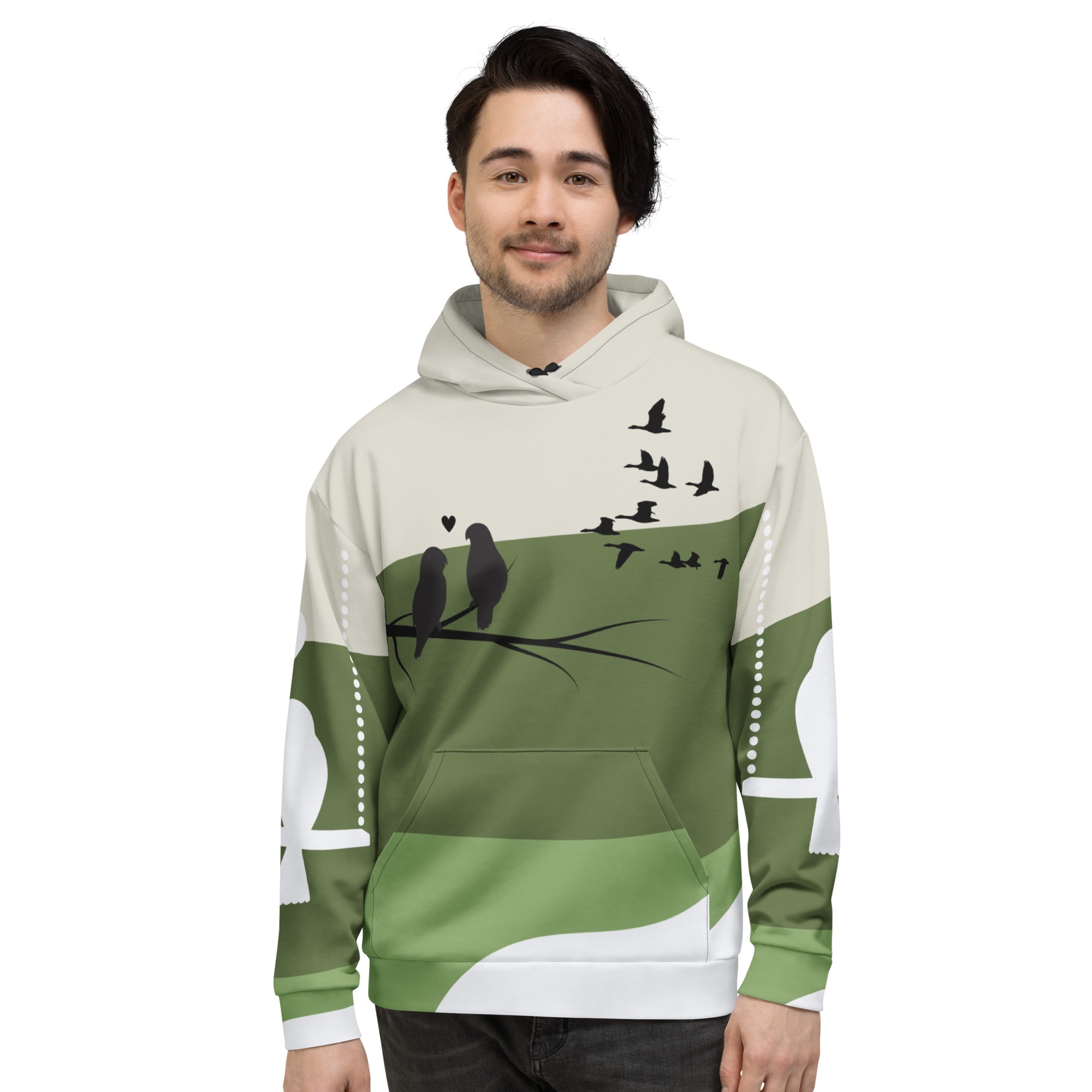 This design is for couples who find joy in simplicity—Effortless Love – Nature-Inspired Hoodie captures the peace of love through artful bird silhouettes and a calming landscape. With a soft green sky, beige hills, and the tender phrase “With you, life feels effortless,” it’s a visual poem of unity and nature. Giftomory’s essence of “Gift + Memory” shines through, making this a perfect present for anniversaries, casual couple outings, or just because.