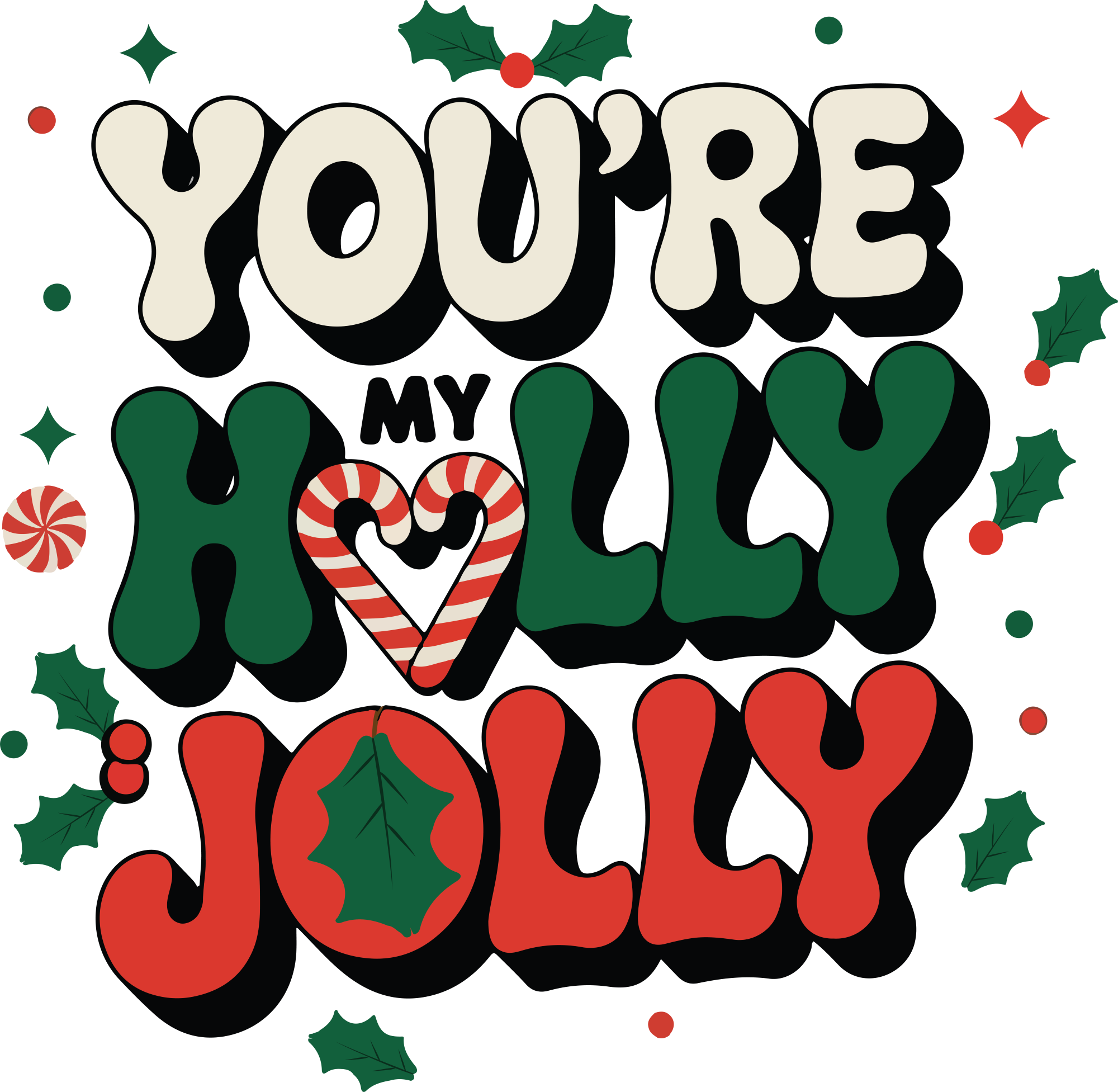 This crop top is a fun and playful way to celebrate the holiday season. The bold typography and festive colors create a cheerful and festive atmosphere. The phrase "You're My Holly Jolly" is a cute and catchy way to express your love for your wife.