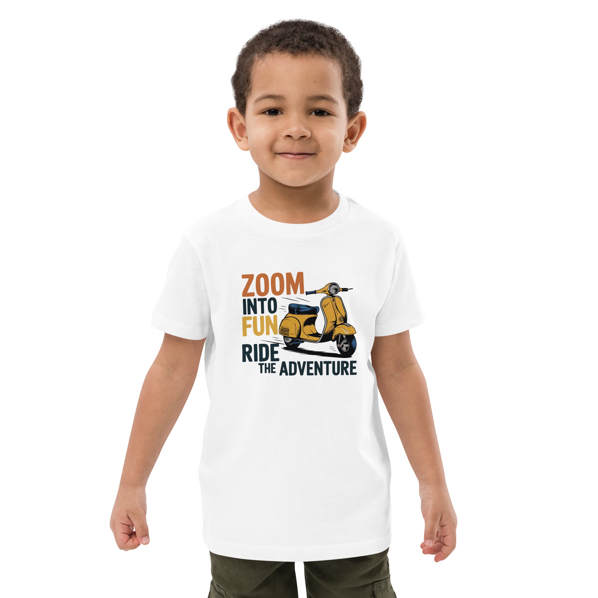 For the little adventurers with big imaginations, our “Zoom Into Fun” tee is a vibrant celebration of motion, excitement, and carefree rides. This design is for kids who chase joy with every step—or scoot! A charming retro scooter in golden yellow takes center stage, surrounded by dynamic, comic-inspired typography reading “Zoom Into Fun” and “Ride the Adventure.” The bold contrast of burnt orange, mustard, and navy evokes nostalgia and sparks a sense of playful wanderlust. Whether it reminds you of your own youthful joyrides or becomes your child’s new favorite tee for outings, it beautifully blends Gift and Memory, the signature promise of Giftomory. It’s perfect for sunny days, park strolls, and every moment that feels like a little adventure.